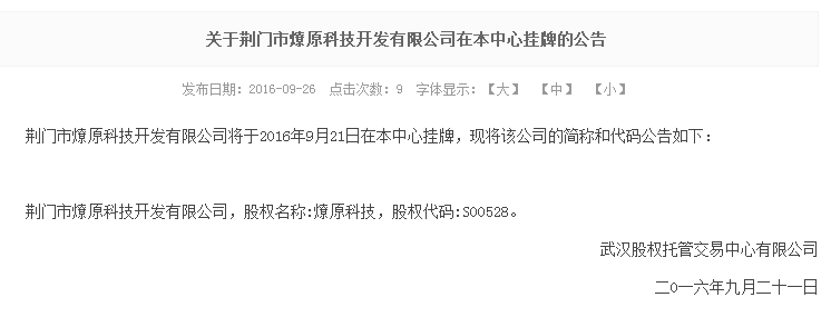 9月21日,來自湖北省最年輕縣級行政區(qū)劃單位——荊門高新區(qū)掇刀區(qū)的48家企業(yè)集體登陸武漢股權(quán)托管交易中心掛牌交易,此次掛牌標(biāo)志著繼武漢東湖新技術(shù)開發(fā)區(qū)和宜昌高新區(qū)之后,又一個國家級高新技術(shù)產(chǎn)業(yè)園區(qū)板塊在湖北“四板”啟動。