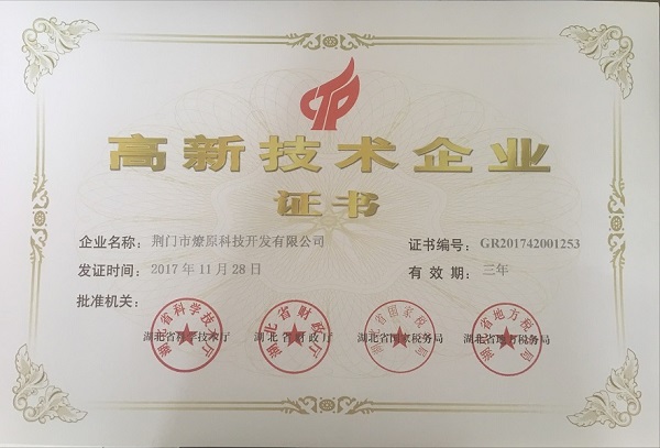 燎原高新技術(shù)企業(yè)證書